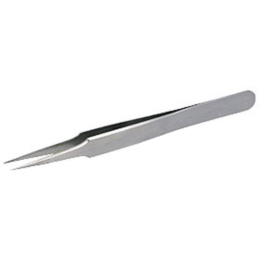 These top quality tweezers have a satin smooth finish and finely ground points. Constructed from an acid-resistant, rust-proof, and non-magnetic steel alloy. Overall length 4-3/4".