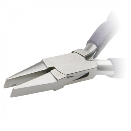 The smooth jaws of this flat nose plier taper from 1/4" to 3/16" width at the tips. For holding and manipulating flat pieces.