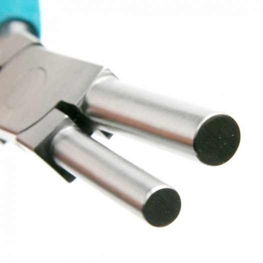 For forming round shapes from wrapped wire or strips of metal. Simply wrap your wire or metal around one of the jaws of these pliers and tap with a mallet. The round jaws are barrel-shaped, as opposed to being tapered, allowing for the same sized loop each time. In addition, the jaws are two different sizes, adding to the versatility of these special Wubbers pliers. Equipped with ergonomically shaped handles, comfort grips, and leaf springs. Available in 5 sizes, the three smallest sizes used for making bails. All jaws are 30 mm long except for the Jumbo size, which have 34 mm long jaws. Overall length: 6.75". Patent pending. |