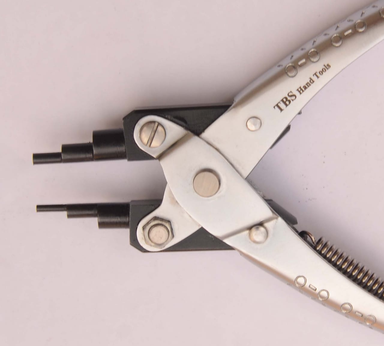 A highly versatile, multi-size tool for creating loops from soft metals in six different diameters: 2.2, 3.2, 4.1, 5.4, 7, and 8 mm (sizes are approximate). Pliers are 5-7/8" long overall and are constructed from stainless steel. Furnished with vinyl grips and leaf springs. Made in Pakistan. |